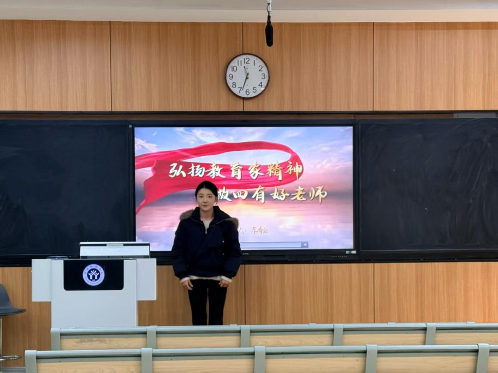 12月4日中午,在教9-208教室进行“弘扬教育家精神 争做时代大先生”演讲比赛汇报。车钰同学以“执教育之笔 绘强国蓝图”为题,以结合优秀教师先进事迹,生动诠释了教育家精神的深刻内涵。通过员工汇报,评委点评,最终推荐车钰同学参加公司“弘扬教育家精神 争做时代大先生”演讲比赛。