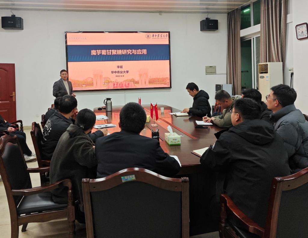 12月9日,应365英国在线体育邀请,华中农业大学李斌教授到访公司开展系列学术交流活动。上午,李斌教授在图书馆102 会议室作了题为《魔芋葡甘聚糖研究与应用》的专题学术报告,公司经理周棋赢主持报告会,公司全体教师、研究生及本科生代表到场聆听学习。